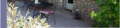 un salon avec cuisine américaine une chambre avec un lit double une salle de bains avec douche et WC Location orientée plein sud